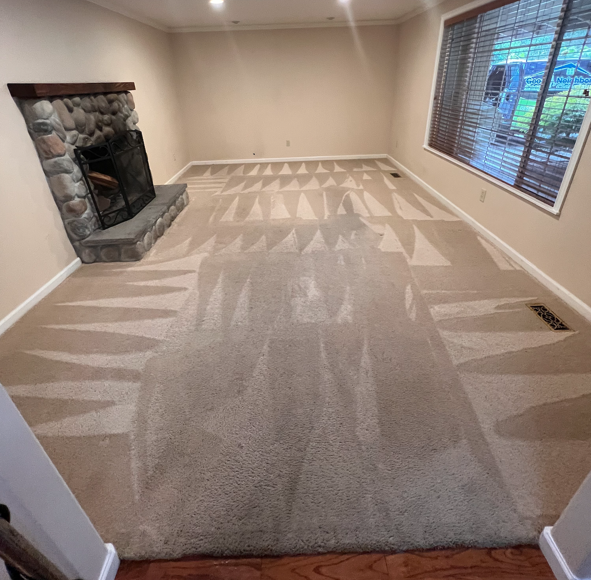 Our encapsulated dry carpet cleaning process uses 85% less water than a traditional steam cleaning process. This method leaves your carpet dry in 1-2 hours rather than 6-12 hours. The environmentally friendly cleaning solutions we use are safe for children, pets and the planet.